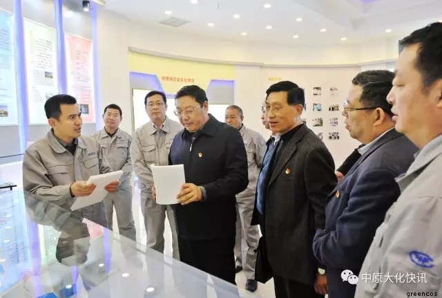在天然氣化工裝置區(qū),馬富國在聽取了有關生產裝置的運行情況介紹后,又向化肥事業(yè)部的管理人員詳細詢問了他們在經營管理、員工培訓、新產品開發(fā)等方面的好經驗、好做法,并勉勵大家不僅要優(yōu)化裝置運行,搞好安全生產,而且要不斷進行知識更新,開闊眼界,努力開發(fā)出具有高附加值的產品,走高端發(fā)展的道路。在煤化工裝置區(qū),馬富國親切看望了生產一線員工,并對甲醇裝置長周期運行所取得的成績給予了充分肯定,同時要求甲醇事業(yè)部要安全、環(huán)保一起抓,精心操作,穩(wěn)定運行。在中原大化公司展廳,馬富國一行興致勃勃地參觀了公司發(fā)展歷程展覽,并指示中原大化要扎實做好綠宇公司新三板上市的各項工作,加快推進上市步伐。